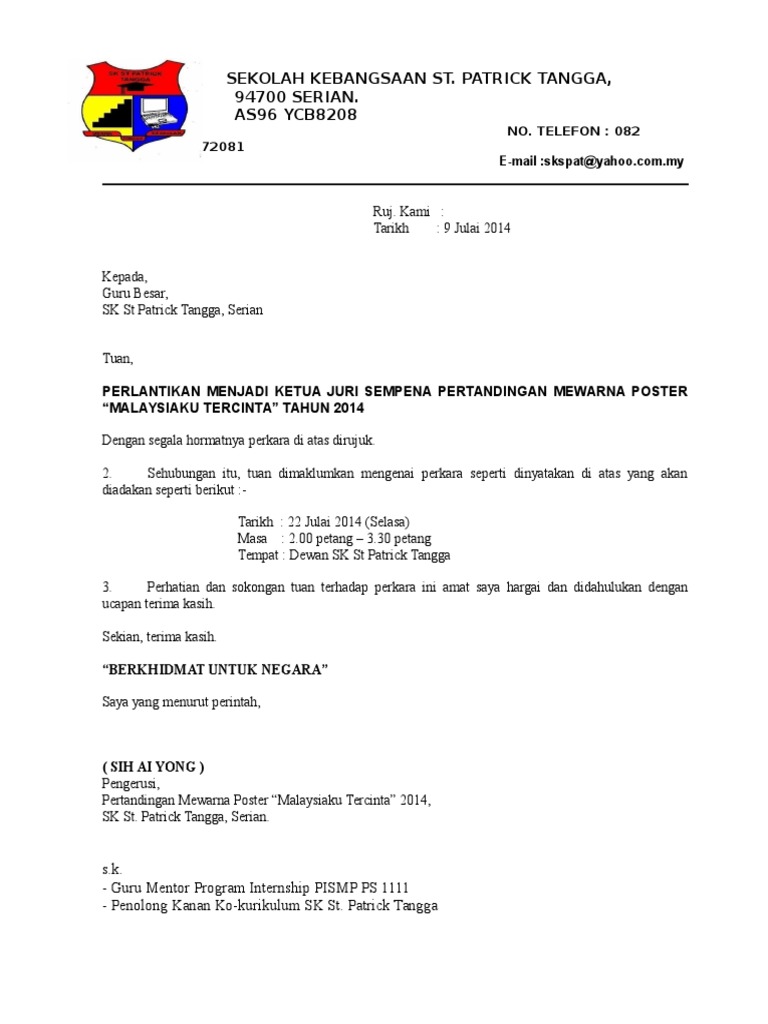Contoh Surat Pelantikan Jawatankuasa Latest Letter Website